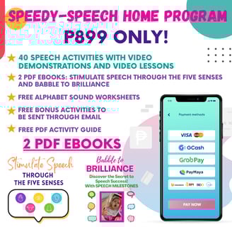 Quicken your child's speech development with our speech home program! This program is suitable for children 1.5 - 4 years old. Our activities can be done at home - can be done anywhere actually - that will allow for more favorable results, because it will give your child more time for speech stimulation.