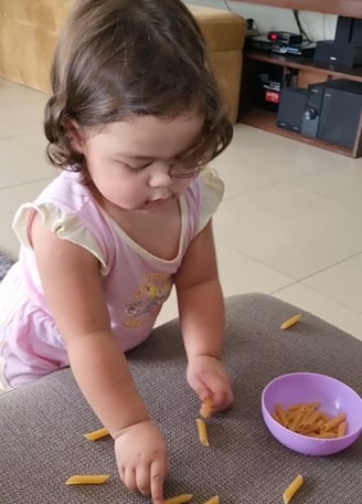 While I looked at my one-year-old, and she was still behind. I knew in my heart that she had speech delay.